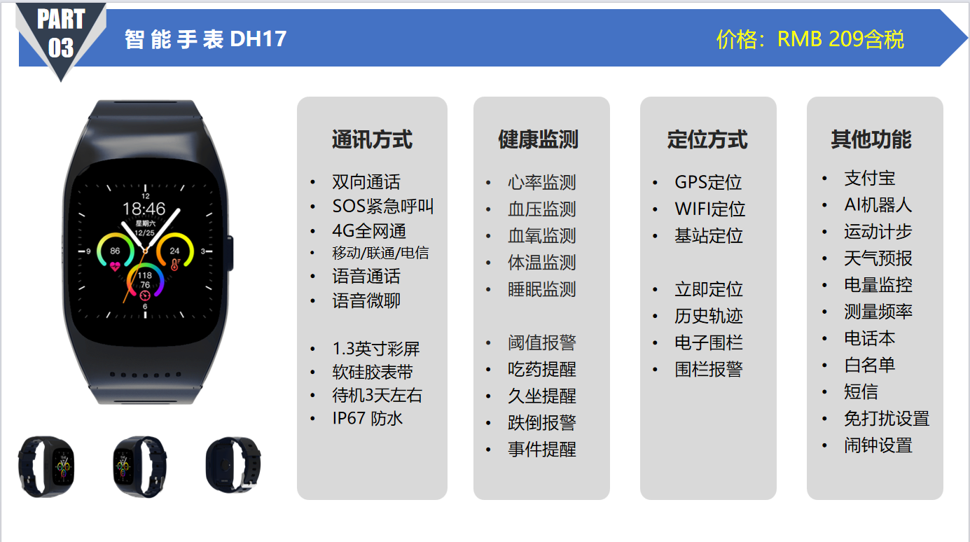 可以在后台或者手机端设置心率、血压、血氧、体温的测量时间间隔,频率 可在后台、手机端设置并查看用户体温上升下降趋势,并及时对用户进行关心 |